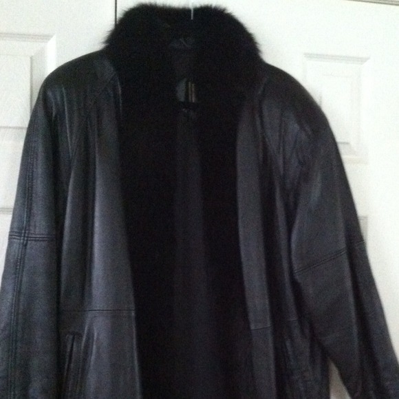100% Genuine soft Leather (black) full length coat with 100% FOX fur – full length collar! A generous Medium!