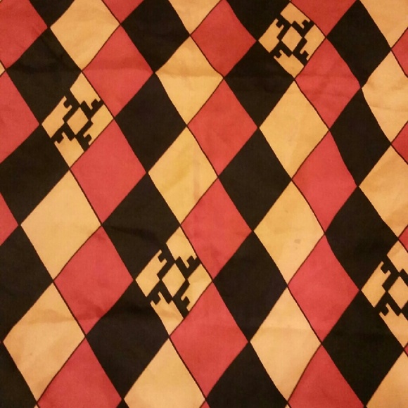 Size is 34.5 inches by 34.5 square this rust black mustard diamond patterned silk scarf is amazingthe color just pops. Great addition to any corporate outfit with a white blouse.