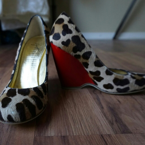 Stunning Giuseppe Zanotti Wedges! Calf hair exterior and cherry red wedge. Beautifully made and so comfortable to wear. These are great for a fun date night or wedding. They’re a fun pop of color and print and will make any outfit look like a million bucks. Super light wear in sole and interior, in pretty well new condition. First and last pics are borrowed.
