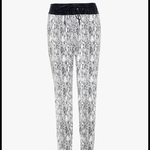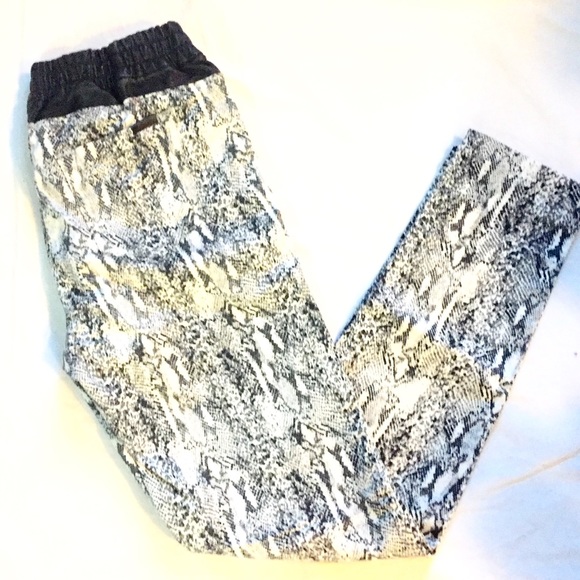 Part of Joe’s Off Duty Collection, The Rocky Jogger in Python Snake Print is a low rise, drawstring jogger pants in a lightweight, comfort stretch denim with a python print and super soft hand feel. NWOTA fluid drapeDropped riseBasic back pocketsA black leather elastic waistband with a coated black drawstring for a sporty-luxe look37% Lyocell, 27% Viscose, 18% Cupro, 16% Cotton, 2% Elastane29″ InseamPrice firm- offers declinedNO REFUNDS * NO RETURNS * NO OFFERS * NO TRADES