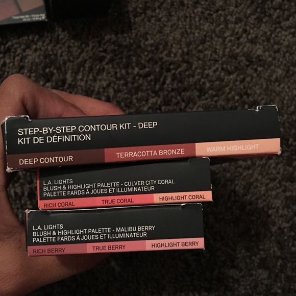 All brand new and have never been swatched or used. You’ll get no repeat colors. – #shapematters, is a full face palette. Comes w shadows, contour colors and eyebrow powder. All colors are universal for everyone. You’ll get the 2 blush palettes and contour palette. The full size primer water and 2 deluxe size primers and the double exposure palette. All brand new and store packaging. Keep for yourself or break it up and sell it.